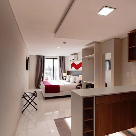 Ramada Suites By Wyndham Asuncion Aeropuerto erbjuder gästerna 38 luftkonditionerade rum. Vissa av dem har gratis Wi-Fi och plattskärms-TV med satellitkanaler samt minibar och vattenkokare. De inkluderar också vattenkokare och köksredskap. Vissa badrum har en separat toalett och en dusch samt badmössor och handdukar. Gästerna kan också njuta av utsikten över poolen.